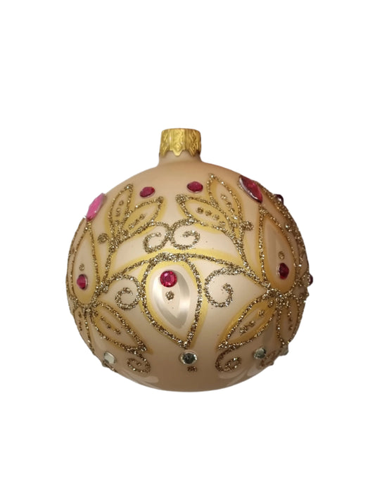 Bauble | Frosted with Gold and White Glitter Patterns (G)
